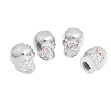 Get Amico 4 Pcs Sliver Tone Pink Skull Head Aluminum Alloy Car Tyre Valve Cap Cover from Amazon